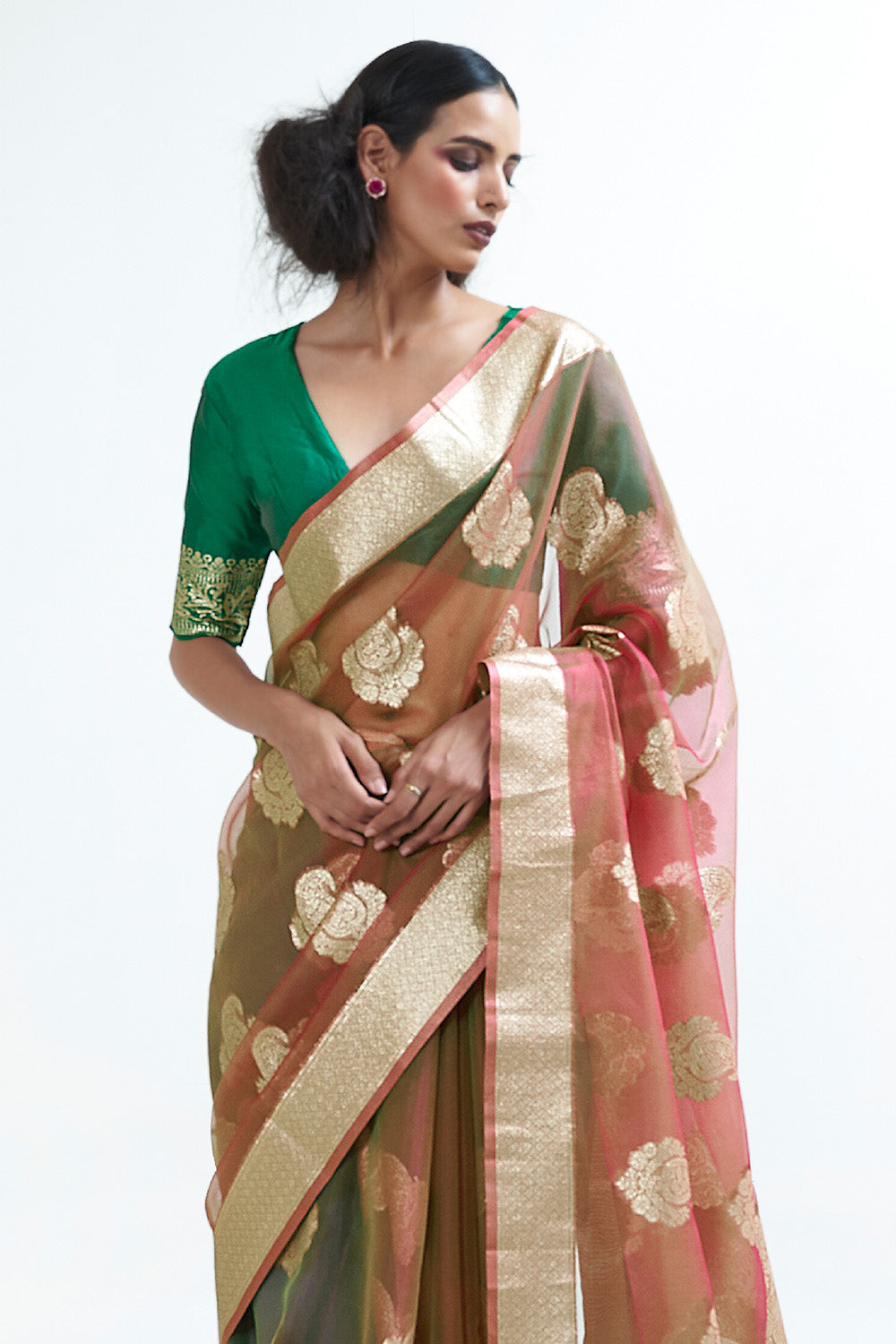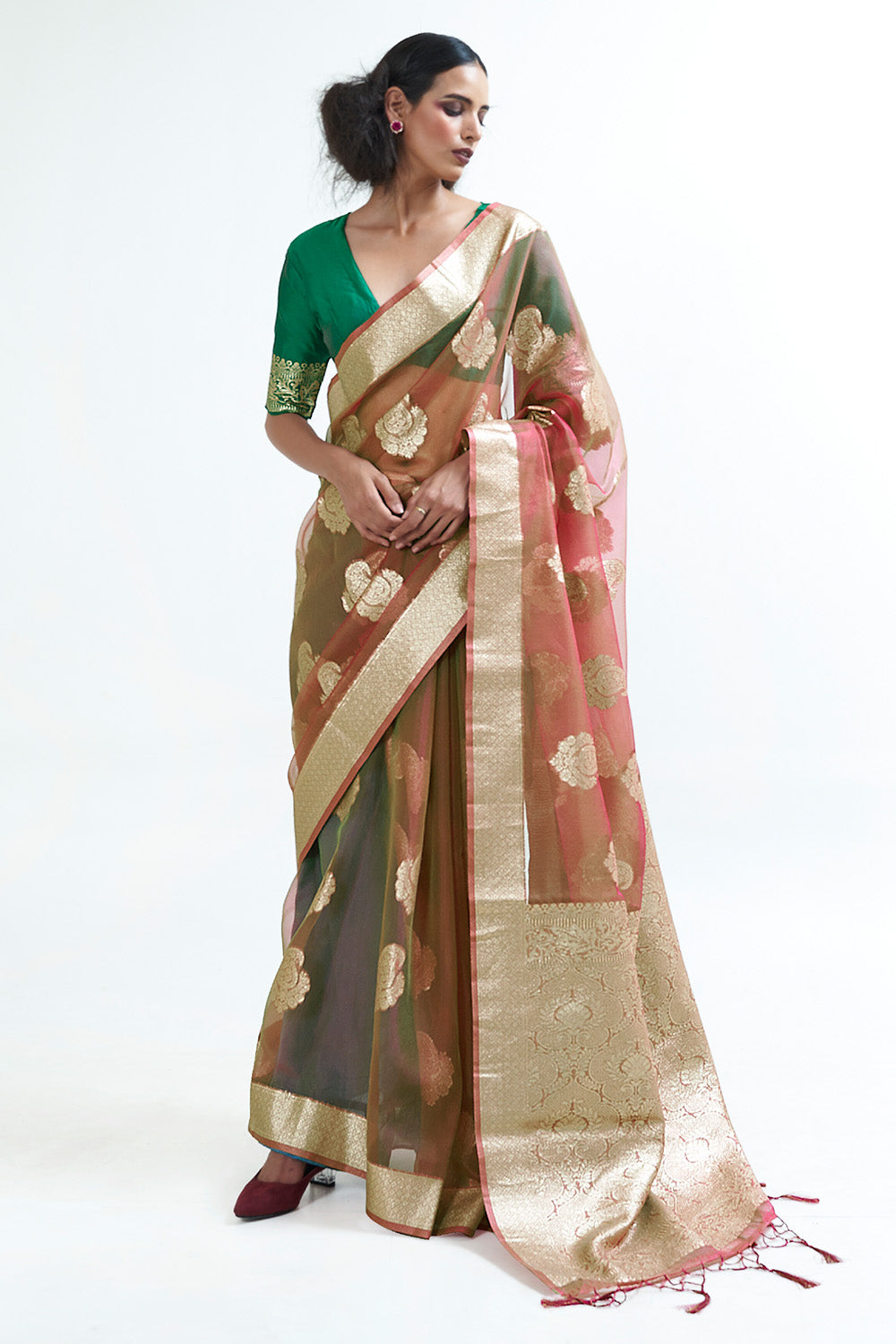 The organza saree is a highly fashionable and essential saree style that has gained immense popularity among young women. The organza fabric offers a sheer and translucent look, making it a favorite choice. There are various options available in terms of fabric, texture, color, and embellishments for organza sarees.