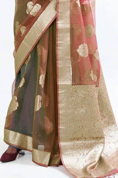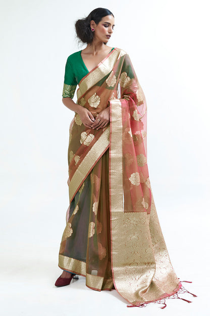 Dessert Brown Organza Saree