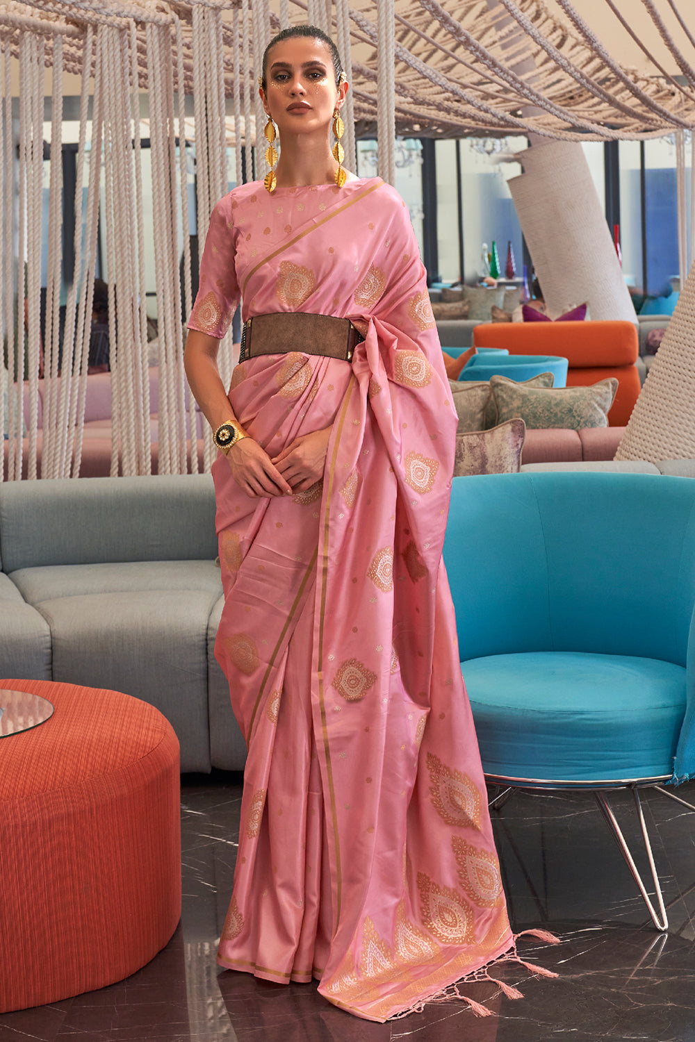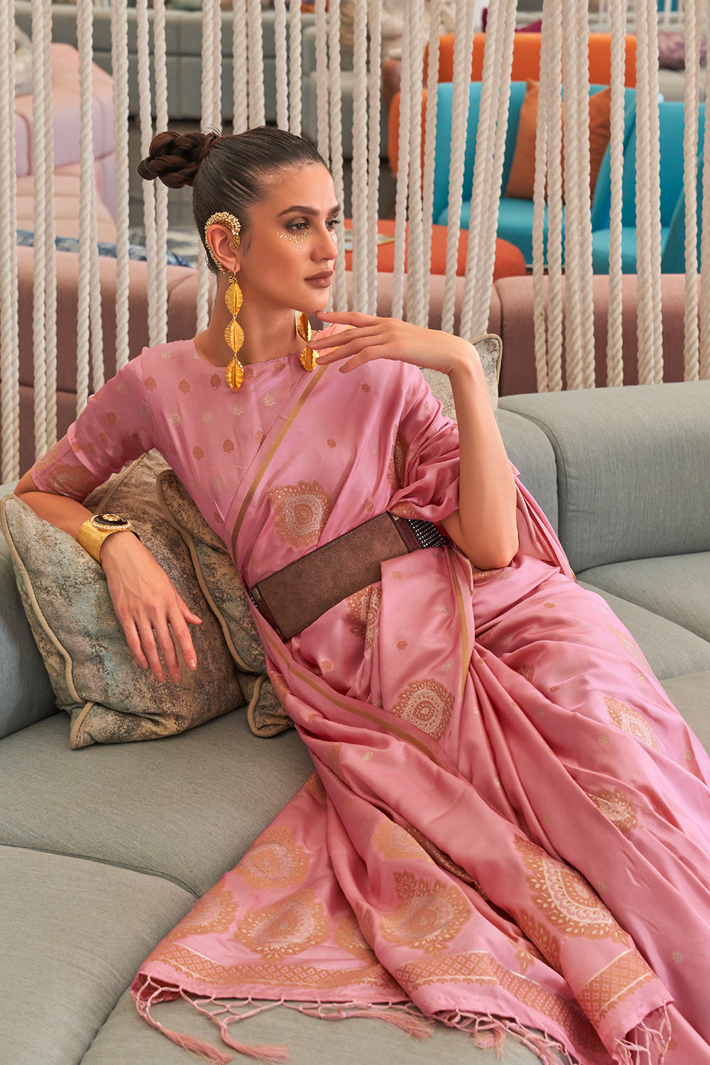 Dusky Pink Satin Saree